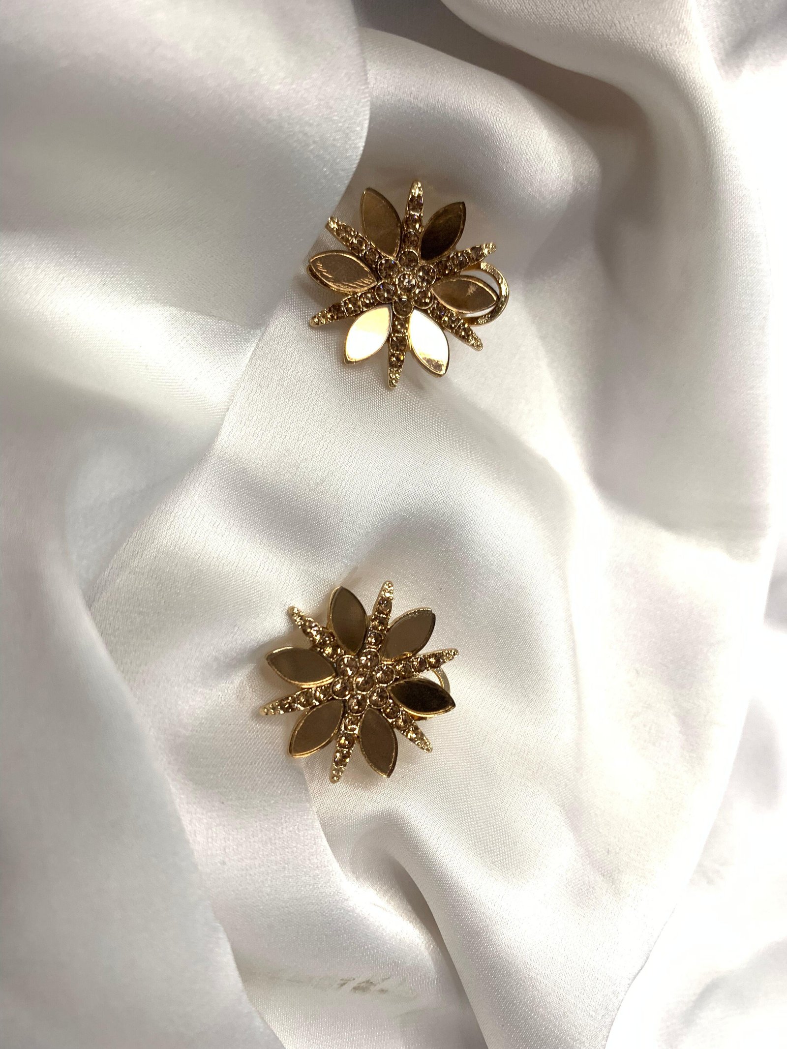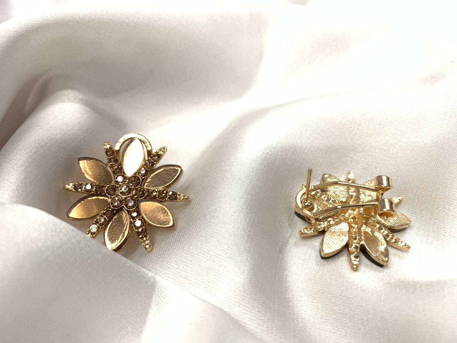 Floral Design: Featuring a beautiful flower shape with gold-plated petals and sparkling center crystals.
